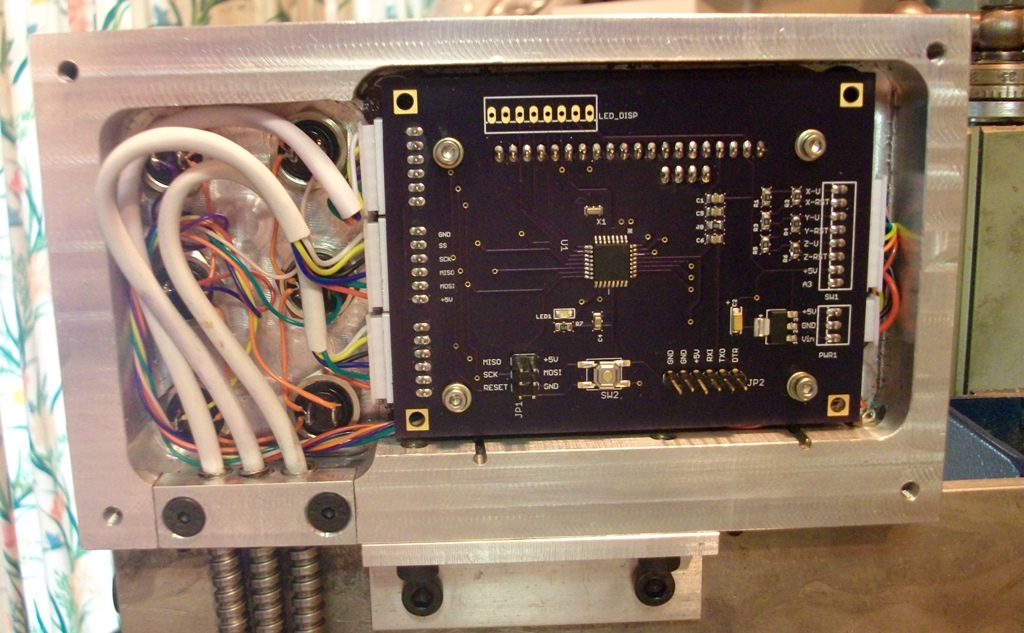 A count reset and Unit (mm’s or inches) Toggle switch inputs are provided via the D4 and D5 pins on the PCB. There’s also a standard ICP connector with the Reset/SPI bus pin for installing the bootloader.